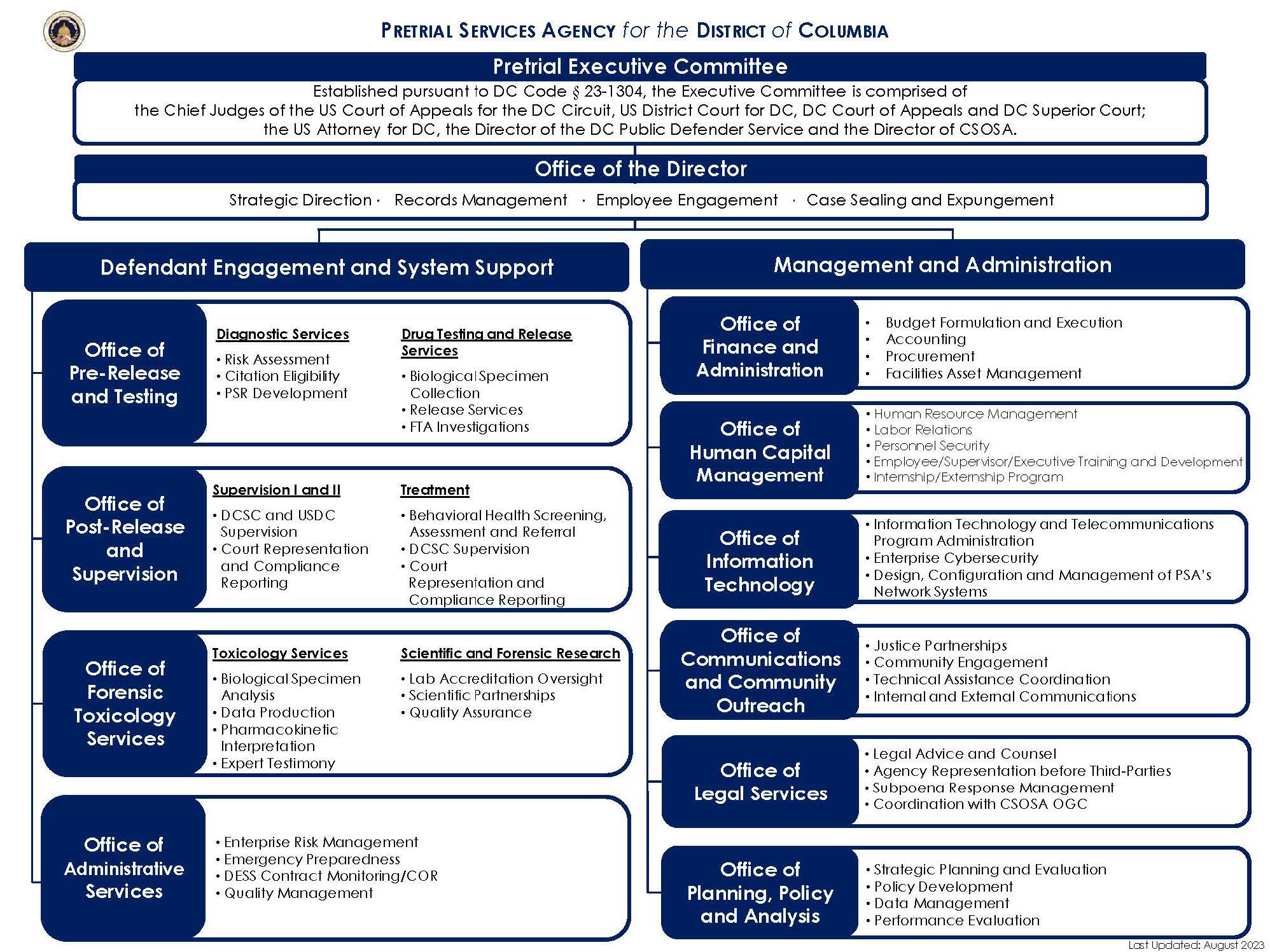 PSA's Congressional Budget Justification is published annually and describes PSA’s programs in the performance plan, the budget estimates for these program activities, and the distribution of the budget by major program. PSA sends its budget request with CSOSA’s to the President who submits it to Congress for authorization. The current budget justification is provided below and prior documents are available in the library.