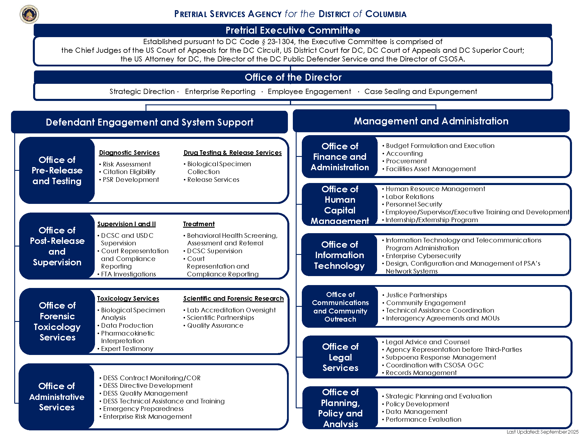 PSA is divided into several specialty offices reporting to the Office of the Director and Pretrial Executive Committee.